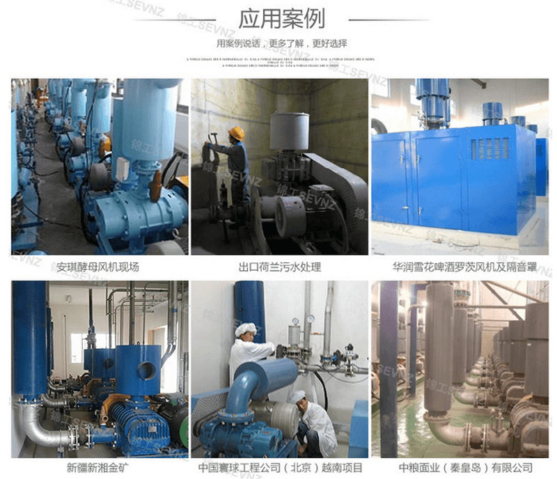 污水處理、石油、化工、面粉、水產養殖、氣力輸送、電力、水泥、食品加工等行業。